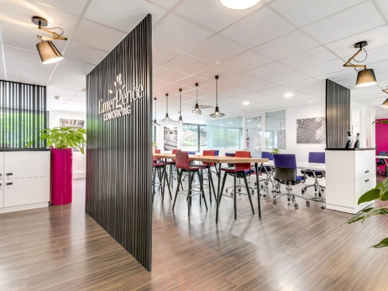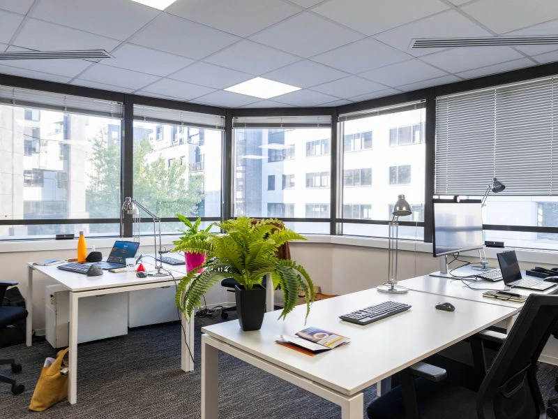 Bureaux privatifs clés en main, climatisés et lumineux, incluant mobilier, fibre optique et accès aux espaces communs.
